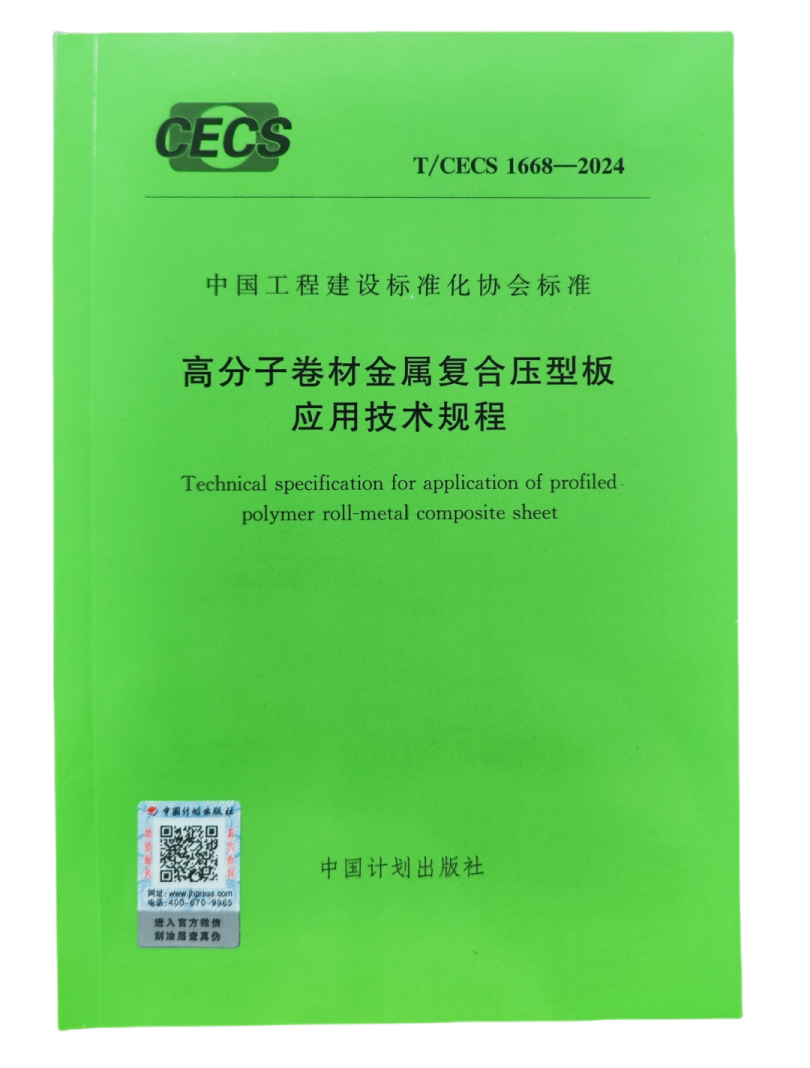 Entonces, ¿cómo podemos hacer que el polímero Mbrane Metal se produzca el perfil de fábrica , aplicable, tecnológicamente avanzado, verde y bajo carbono, económicamente razonable y garantizar la calidad del proyecto en los proyectos de construcción de techos? ¡Las especificaciones técnicas para la aplicación del panel perfilado de metal de membrana de polímeros s 'editado por Canlon y China Building Standard Design Institute Co., Ltd. le proporcionarán una respuesta científica, rigurosa y profesional!