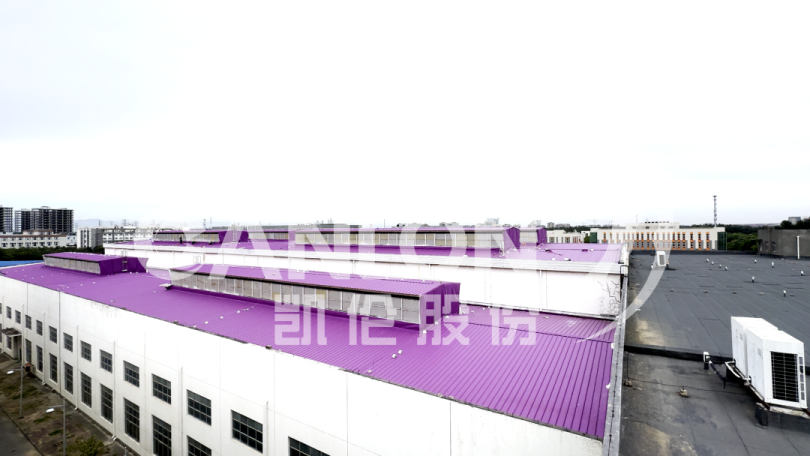 Los Purple paneles de techo integrados TMP ® en la foto fueron fabricados a medida por Canlon para Newlang Packaging Machinery (Beijing) Co., Ltd. Fundada en 1995, la compañía se encuentra en la base de la industria biofarmacéutica en el distrito Daxing, Beijing. Es la 13ª subsidiaria de propiedad total establecida en el extranjero por el grupo Newlang de Japón. El techo de la fábrica había llegado al final de su vida útil después de años de meteorización de los elementos. Se seleccionó un panel integrado de 2.4 mm de espesor para la reparación y la actualización, asegurando que durará otros 20 a 30 años.