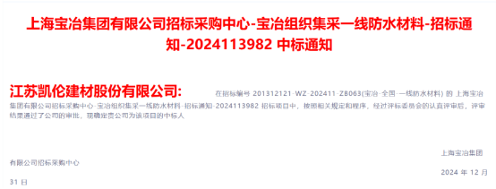 Recientemente, canlón recibió un aviso ganador de Shanghai Baoye Group Co., Ltd. y fue determinado como el postor ganador para el proyecto de licitación de adquisición centralizada de materiales impermeables de primera línea, lo que demuestra el alto reconocimiento de Shanghai Baoye por canlón La calidad del producto, las capacidades de servicio integrales y la influencia de la marca.