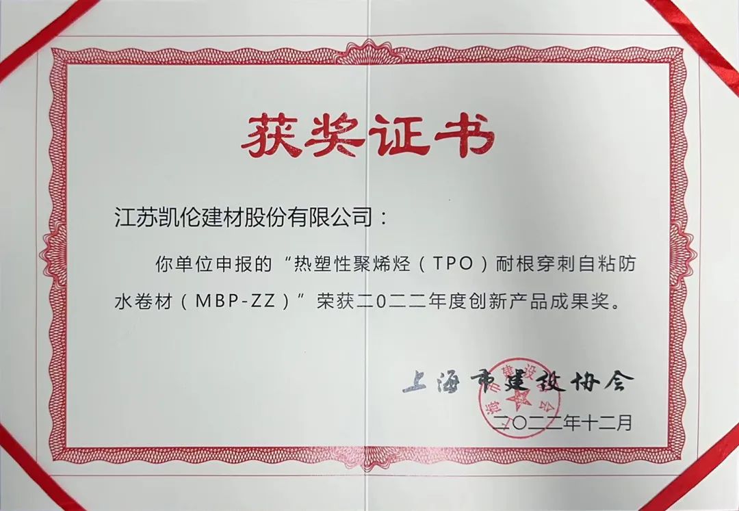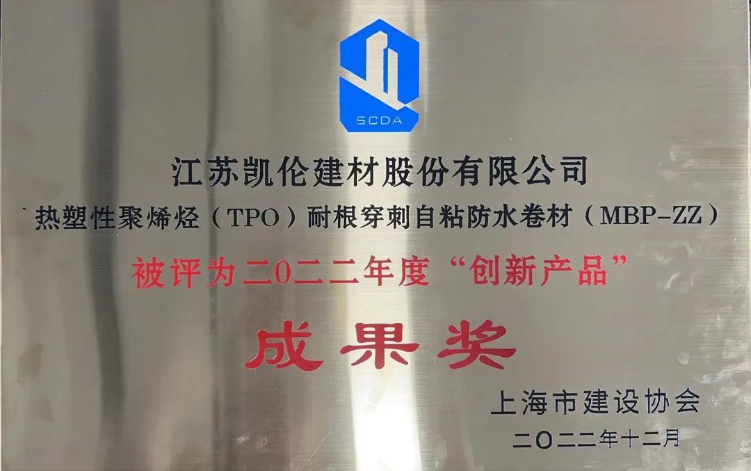 El 26 de abril, la Asociación de Construcción de Shanghái celebró la octava reunión del cuarto consejo.En la reunión, la Asociación de la Construcción de Shanghái anunció los ganadores del 2022 'Proyectos de demostración, productos innovadores y tecnologías avanzadas' actividad de selección, y entrega de premios a los ganadores. CanlónPoliolefina termoplástica (TPO) autoadhesiva resistente a pinchazos de raíz resistente al aguamembrana interna (MBP-ZZ) recibió el Premio al Logro 'Producto Innovador' 2022.