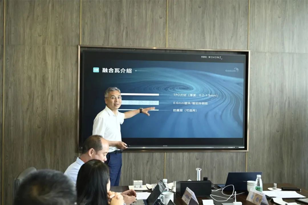 En la sesión de intercambio técnico, el presidente Li Zhongren presentó la estructura básica, el esquema del sistema y varios indicadores de desempeño de Canlon. Panel de metal revestido de TPO(TMP Panel) a los expertos, incluidos los parámetros de retardante de llama y viento edificación resistencia, mostró la animación de los pasos de instalación, la comparó con la capa impermeable a continuación, las ventajas de Panel de metal revestido de TPO en control de calidad, control de seguridad e incluso mantenimiento, y propuso que la anticorrosión física es una opción más simple y confiable para los techos industriales y comerciales actuales.