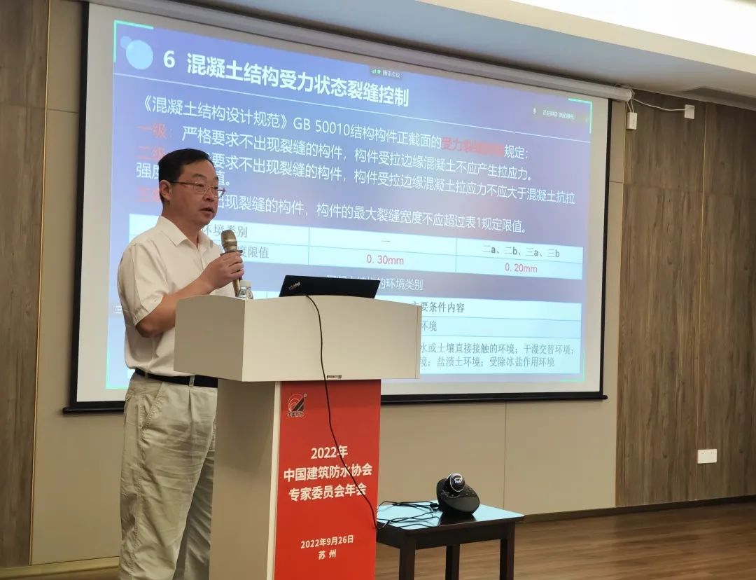 Hu Jun, presidente de Hangzhou Jintang Building Waterproof Co., Ltd. e ingeniero senior a nivel de profesor, compartió el tema de 'Impermeabilización rígida y autoimpermeabilización de estructuras de hormigón', presentó los puntos de diseño y construcción de la impermeabilización rígida y la autoimpermeabilización. -Impermeabilización de estructuras de hormigón, y analizadas en combinación con la demanda actual del mercado.
