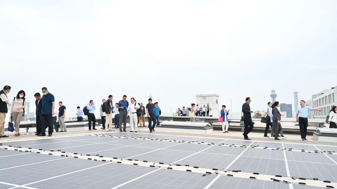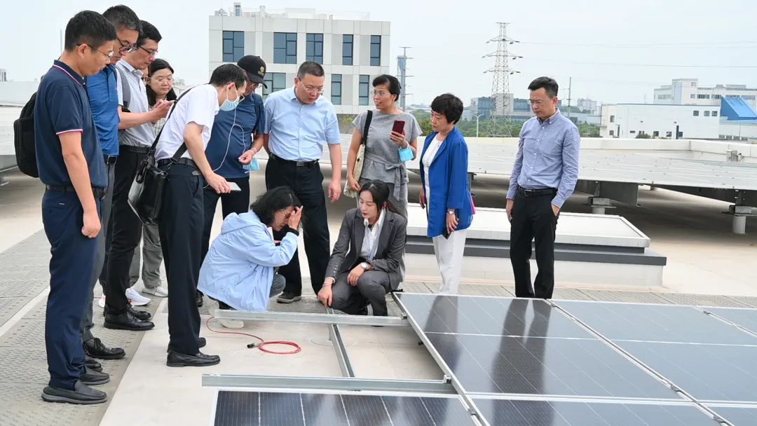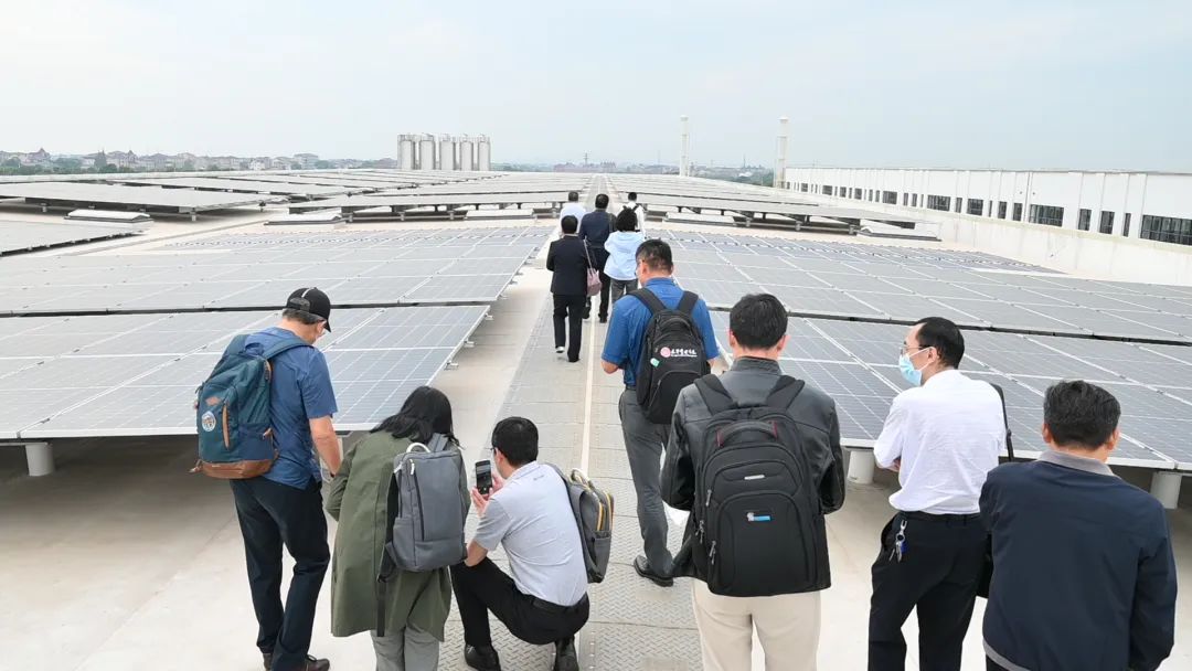 Después de la reunión, los expertos y los miembros del comité fueron al techo de la planta del Parque Canlon CPCM para visitar el efecto de la aplicación práctica del sistema de techo fotovoltaico integrado e intercambiar y discutir el diseño y la construcción del sistema de techo fotovoltaico en el lugar.