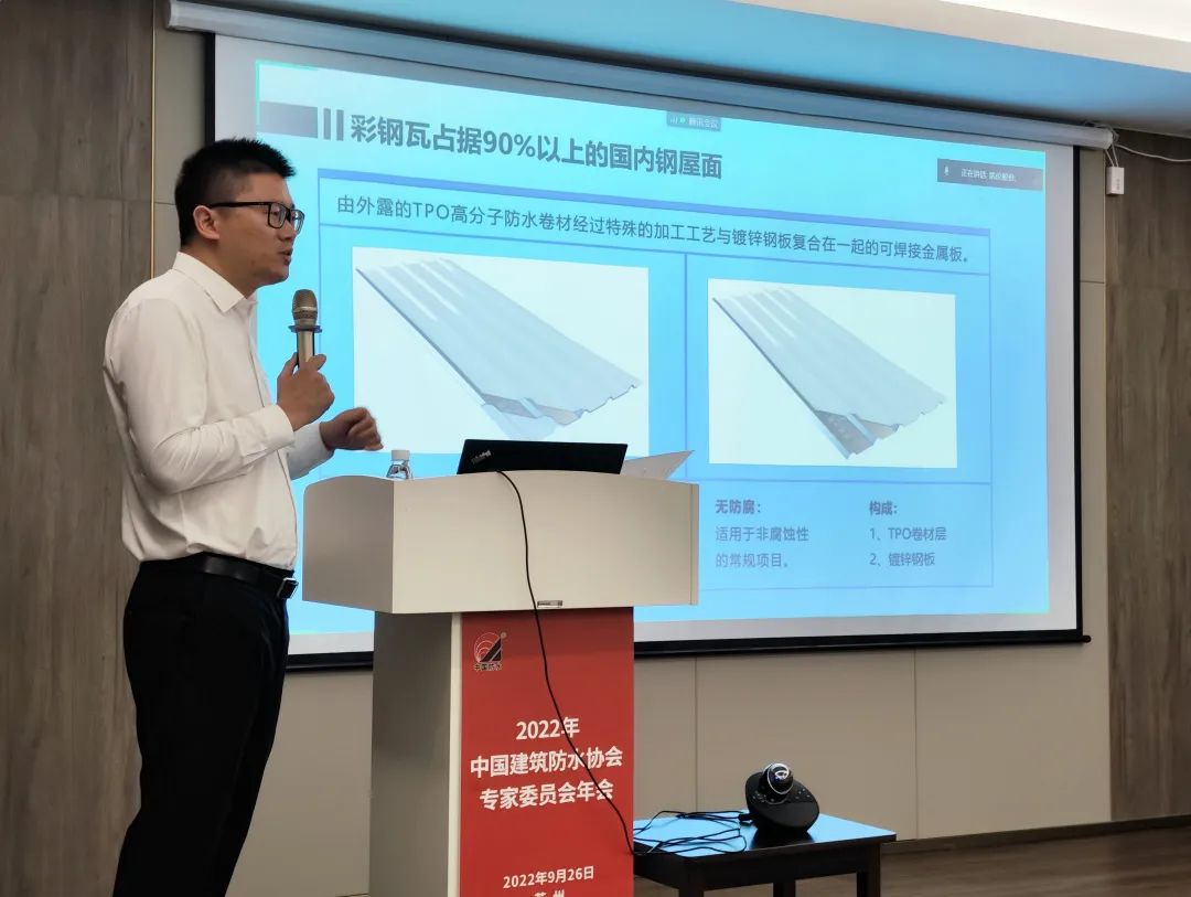 En la reunión, varios miembros del comité y expertos subieron al escenario para compartir y presentar los últimos productos y soluciones técnicas en el campo de la impermeabilización.