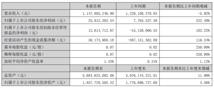 Durante el período de informe, Canlon logró ingresos de 1.148 mil millones de yuanes, una ligera disminución del 5,92% interanual; El beneficio neto atribuible a los accionistas de los padres fue de 25.8124 millones de yuanes, un aumento del 232.48% interanual; El flujo de caja operativo fue de 50.1740 millones de yuanes, un aumento del 116.34% interanual; Las ganancias básicas por acción fueron de 0.07 yuanes, un aumento de 250.00% interanual.