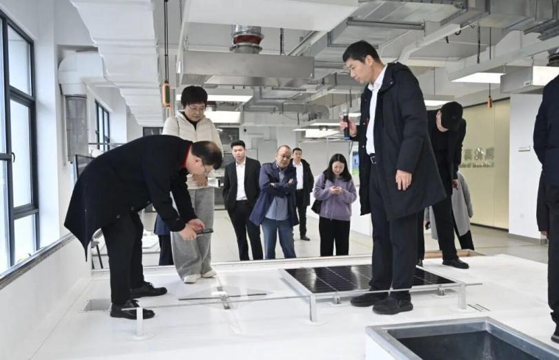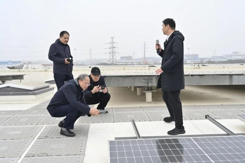 Posteriormente, el equipo de observación subió al techo del edificio de la fábrica del Parque Industrial Canlon Polymer para visitar e intercambiar ideas sobre el proceso de instalación del soporte vertical, la disposición de los sujetadores y el esquema de instalación de los módulos fotovoltaicos.
