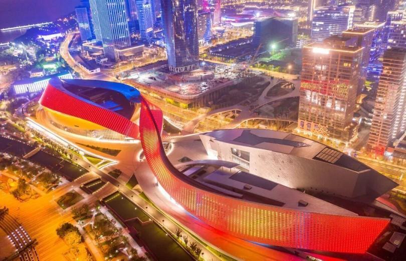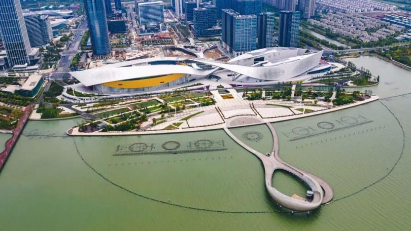 El proyecto del Centro Cultural de la Bahía de Suzhou cubre aproximadamente 160 mu (aproximadamente 1,6 acres) y tiene un área total de construcción de aproximadamente 215.000 metros cuadrados. Con una inversión total de aproximadamente 3.090 millones de yuanes, el Gran Teatro, situado al norte, incluye una ópera con capacidad para 1.600 personas y una sala de teatro con capacidad para 600 personas. Con el doble de tamaño que la Ópera de Sydney, es el tercer teatro más grande de China. El Centro Cultural de la Bahía de Suzhou es también el primer complejo cultural urbano de China que integra un gran teatro, cine, museo y salas de exposiciones.