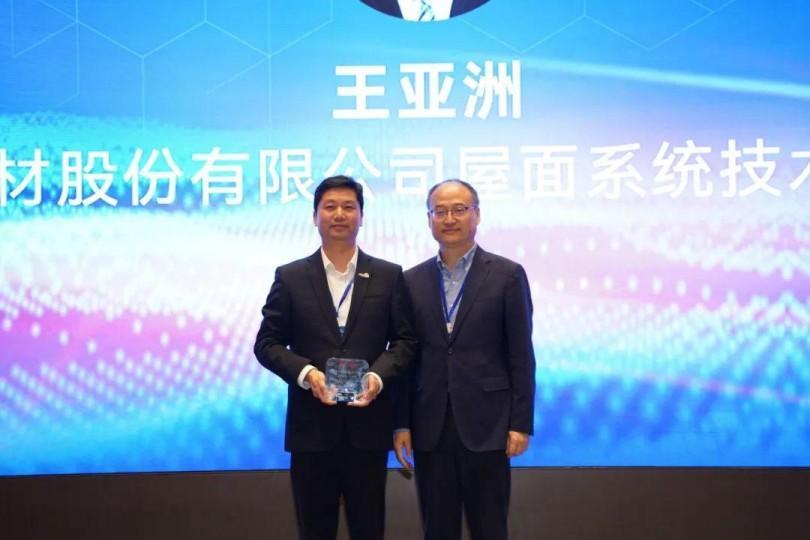 Wang Yazhou, Gerente General del Centro de Tecnología del Sistema de Rechas de Canlon , subió al escenario para dar un discurso como representante del premio de innovación tecnológica. Introdujo los antecedentes de investigación y desarrollo, situación del mercado, productos y ventajas y aplicaciones de ingeniería del panel integrado TMP ®️ . También analizó y comparó las ventajas respectivas de las membranas de polímeros PVC y TPO.