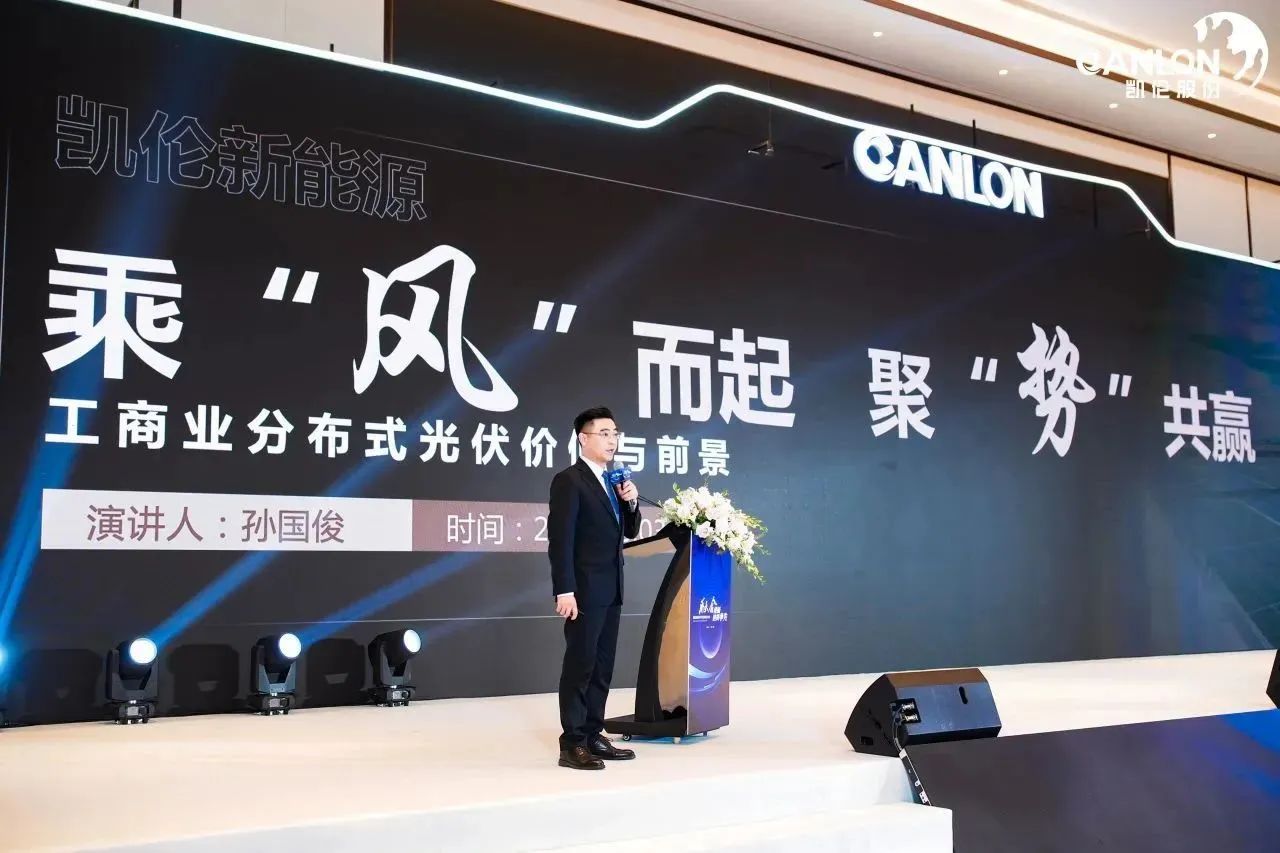 Sun Guojun, director general de canlón New Energy Technology Co., Ltd., compartió el tema 'Aprovechar el viento, reunir impulso y ganar-ganar: el valor y las perspectivas de la distribución industrial y comercial'. Photovoltaico' . Este tema compartido se centra en el establecimiento de canlón New Energy presenta los servicios de sistemas de la empresa y ayuda a los socios a obtener una comprensión más profunda de la estructura y las ventajas de los sistemas de techo fotovoltaicos integrados.