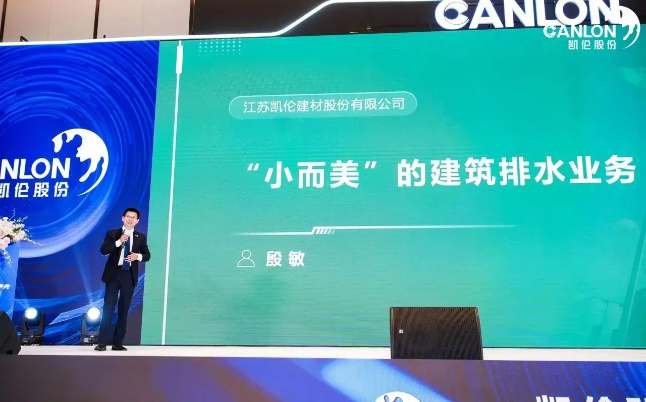 Yin Min, Director del Departamento Comercial Integrado de Impermeabilización y Drenaje, compartió el tema 'Negocios de drenaje de edificios pequeños pero hermosos'. el yointroducido canlón’s Sistema de drenaje e impermeabilización con sifón SDR que puede realizar múltiples funciones de impermeabilización, drenaje y reciclaje de agua de lluvia, así como el potencial de promoción en el mercado de los edificios ecológicos y la construcción de ciudades esponja.