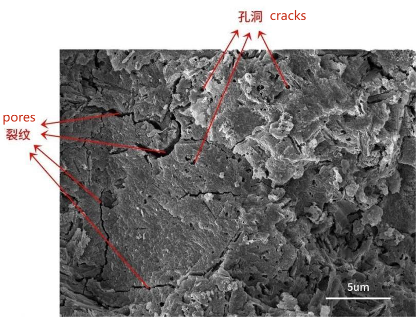 Microfisuras y poros a escala de 5 µm
