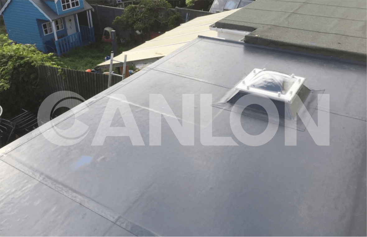 El material seleccionado es la membrana para techos de PVC con respaldo de lana Canlon de 1,5 mm, que cuenta con la certificación CE y la certificación BBA local.