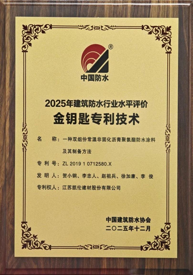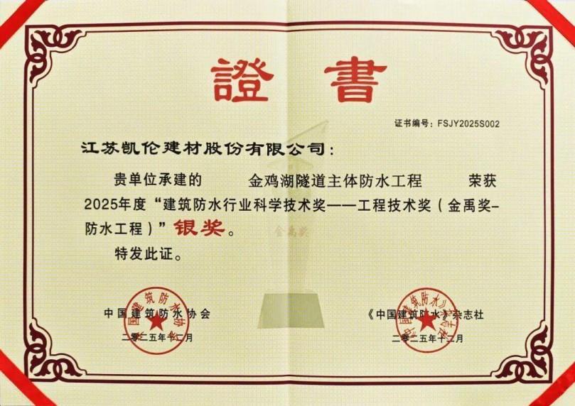 'Un revestimiento impermeable de poliuretano asfáltico de dos componentes, sin curado, a temperatura ambiente y su método de preparación' (ZL 201910712580.X) de El proyecto de impermeabilización principal del túnel del lago Jinji ganó un premio de plata en el Premio de Tecnología de Ingeniería (Premio Jinyu), lo que demuestra contundentemente la excelente calidad del sistema de impermeabilización integrado.Canlon ganó el premio a la tecnología de patentes 'Golden Key';