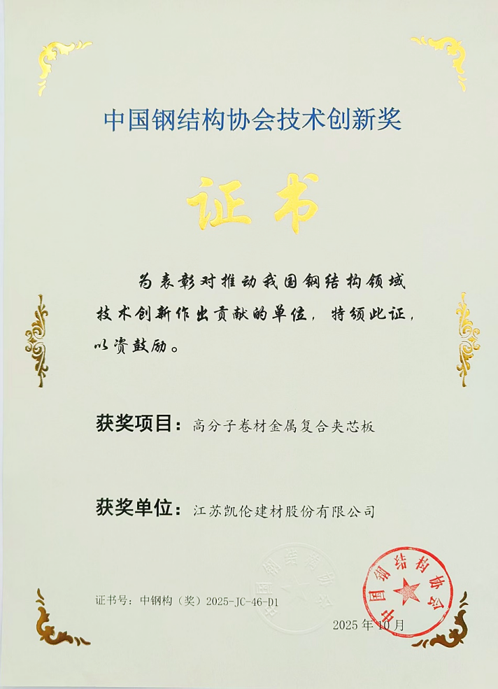 El 13 de octubre de 2025, se inauguró grandiosamente la 'Novena Conferencia de Representantes de Miembros de la Asociación de Estructuras de Acero de China y la Conferencia de Estructuras de Acero de China 2025' en Nanning, Guangxi. El proyecto 'Panel sándwich compuesto de metal con membrana polimérica' de Canlon ganó el 'Premio a la Innovación Tecnológica' 2025 de la Asociación de Estructuras de Acero de China por su innovación y practicidad líderes en la industria.