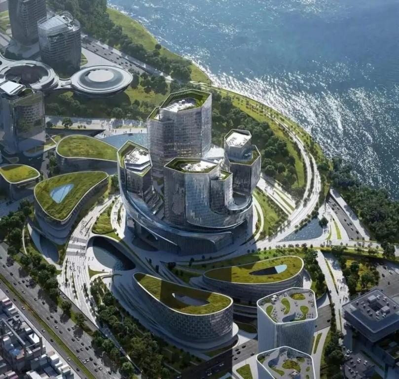 El proyecto de la nueva sede de Tencent Qianhai en Shenzhen, conocida como 'Isla Pingüino', representa una inversión de 31.900 millones de yuanes y tiene una superficie total de construcción de 2 millones de metros cuadrados. El edificio de la sede de Tencent está ubicado en el centro de 'Penguin Island' y consta de cuatro torres en espiral, que se asemejan a un motor de alta velocidad, de ahí el nombre 'Technology Engine'.